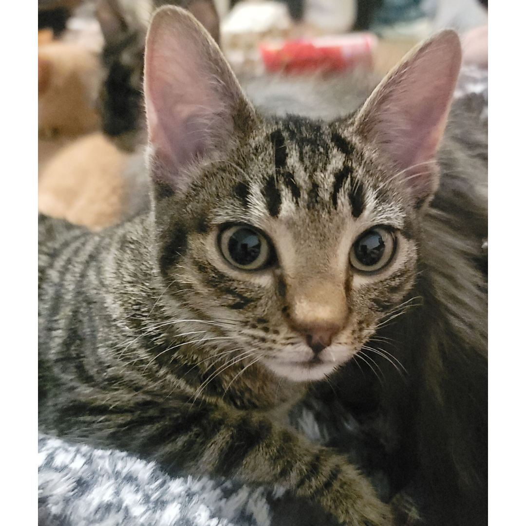 - All about me:Tornado Tori lives up to her name in the very best way! This spirited girl zooms into every room with confidence, curiosity, and a whole lot of personality. She’s playful, energetic, and always ready to chase a toy, pounce on imaginary foes, or turn everyday moments into her own adventure. Tori loves interactive playtime and thrives when she has space to explore and burn off her kitten energy. But after the storm settles, she’s more than happy to curl up for a cozy nap and recharge for her next round of fun. She would do wonderfully in an active home that appreciates a bold, entertaining cat with lots of spark. If you’re looking for a lively companion who keeps life exciting and full of laughter, Tornado Tori is ready to sweep right into your heart.